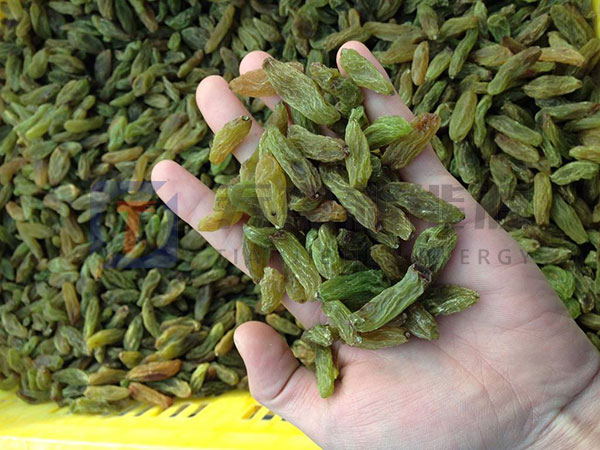 烘干:將洗好的葡萄放入葡萄籽烘干設(shè)備托盤(pán),物料車(chē)擺放好后推進(jìn)葡萄烘干房。葡萄烘干機(jī)初溫45~50℃,終溫70~75℃;烘干時(shí)間42~60h,系統(tǒng)排濕量要大,脫水率已達(dá)70%。全干后仍保持綠色。葡萄籽烘干設(shè)備烘干適度的葡萄干,肉質(zhì)柔軟,用手緊壓無(wú)汁液滲出。含水量為 15%~17%,干燥率為3:1~4:1。