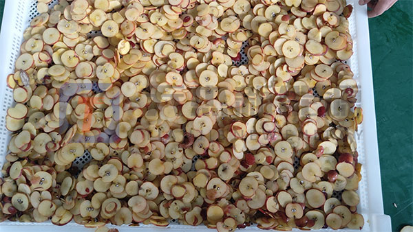 1、對沙果生長后期不能成熟的青果,可采用切片制干。其方法是:一是人工切片或者設(shè)備切片,果片厚度為0.3厘米左右,并經(jīng)過人工將沙果干放在沙果干烘干房烘盤里面,擺放均勻,然后通過沙果干烘干機烘干,烘干后,待冷卻之后,通過真空包裝機包裝封口,然后裝箱出售。沙果干片可作為制蜜餞、飲料的原料。