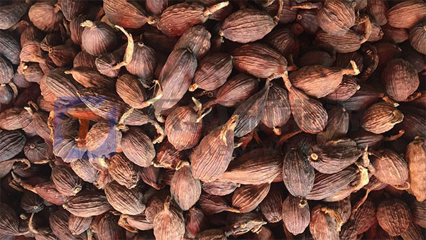 當(dāng)草果由鮮紅轉(zhuǎn)為紫紅色,種仁表面由白色變?yōu)樽睾稚?,口嚼后有濃烈辛辣味時(shí),草果即視為成熟,可以采收加工。采收草果果穗時(shí),用鐮刀從果穗基部割下整個(gè)果穗,在烘干前再將草果果實(shí)單個(gè)摘下,摘草果時(shí)可用手逐個(gè)將其撕下,也可以用剪刀剪取,但需要帶一點(diǎn)果柄,避免撕傷到果實(shí)基部,這樣在烘干時(shí)果實(shí)不易破裂,確保產(chǎn)品品質(zhì)。