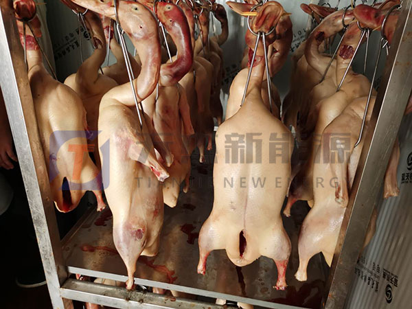 鴨子烘干機是利用壓縮機,將工質(zhì)經(jīng)過膨脹閥后在蒸發(fā)器內(nèi)蒸發(fā)為氣態(tài),并大量吸收空氣中的熱能,氣態(tài)的工質(zhì)被壓縮機壓縮成為高溫、高壓的氣體,然后進入冷凝器放熱,把干燥介質(zhì)加熱,如此不斷循環(huán)加熱。